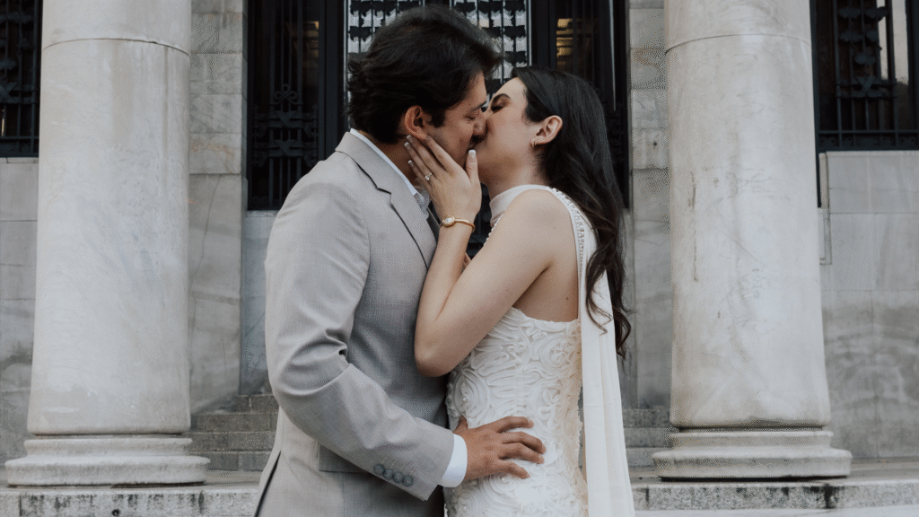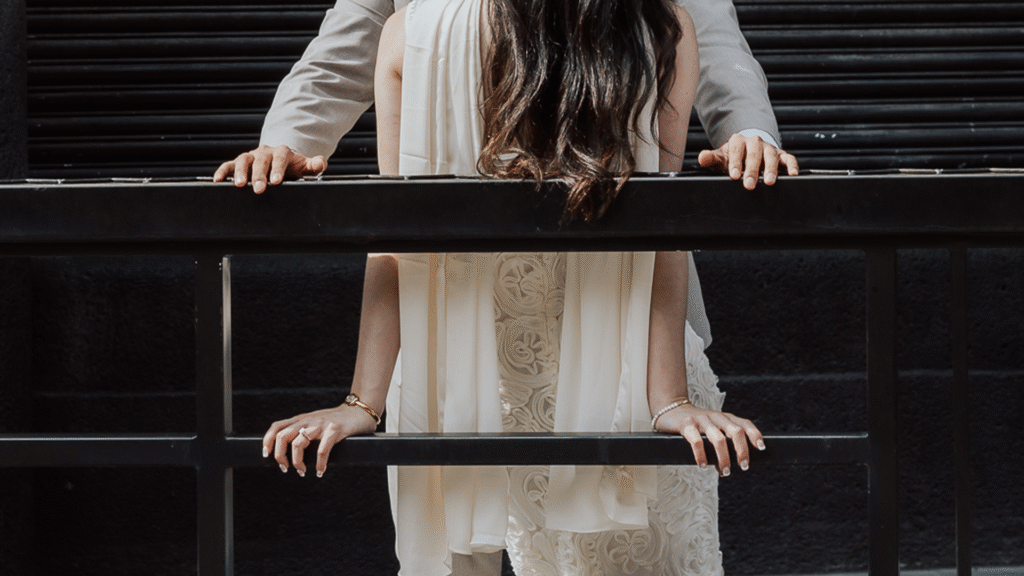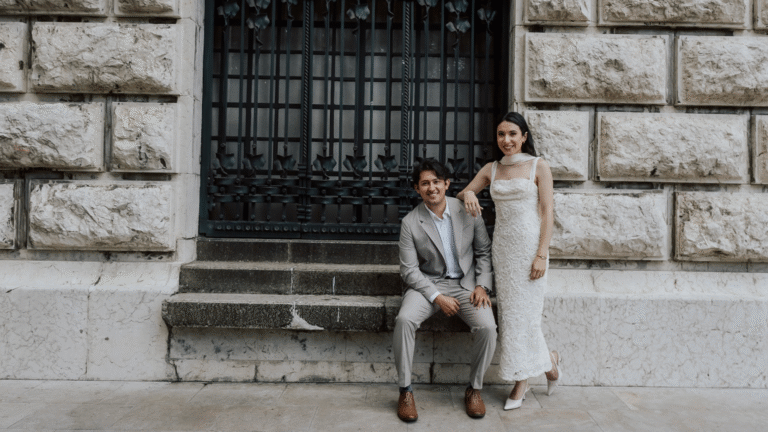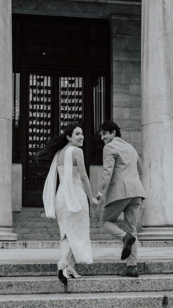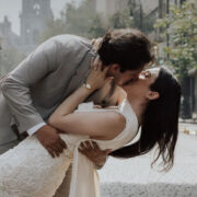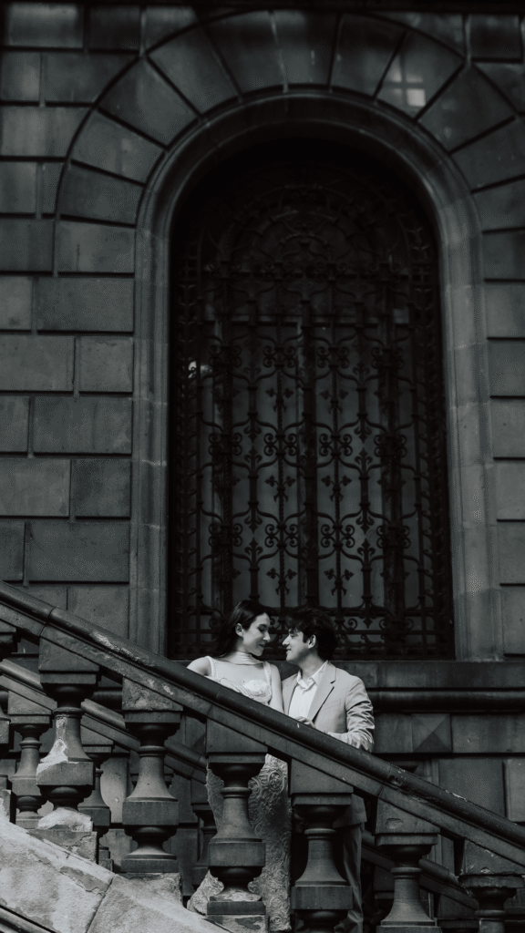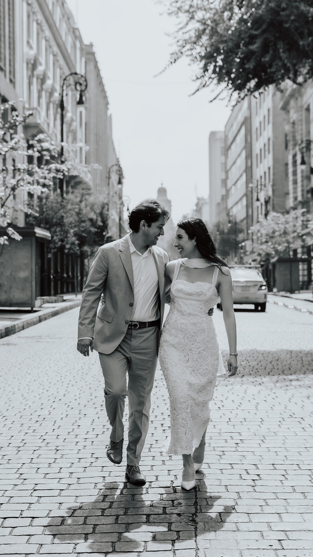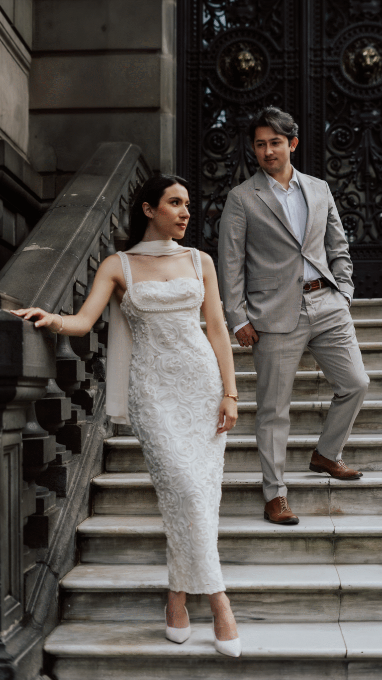 Vestido largo y Traje con corbata